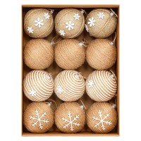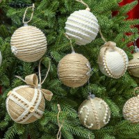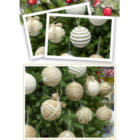 Елочные шары, созданы в аутентичном, деревенском стиле, украшены натуральным джутом и бусинами.