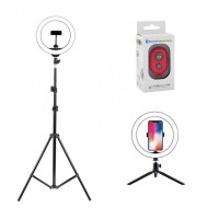 Кольцевая светодиодная лампа со штативом zKissfashion диаметром26 см имеет 120 SMD LED светодиодов очень высокого качества. Идет вкомплекте со штативом c регулируемой высотой от 70 до 190 см, сметаллическим шаровым креплением (360 градусов) и держателем длясмартфонов шириной от 6,5 см до 9,5 см (подходит для iPhone 6 иболее больших моделей).