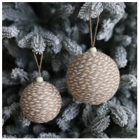 Новогодние шары созданы из легкой пены, обернутой шнурами джута, они настолько легкие, что ветви новогодней защищены от провисания.