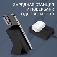 Unbremer Wireless Power Bank 10000mAhподдерживает беспроводную зарядку Qi, что позволяет заряжатьсовместимые устройства без использования проводов. Кроме того, оноснащен двумя портами для проводной зарядки мощностью, чтопозволяет заряжать до трех устройств одновременно.
