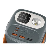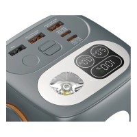 Устройство оснащено дисплеем, на котором отображается текущийуровень заряда, и пятью выходными портами (2xUSB, 3xType-C), чтопозволяет заряжать несколько устройств одновременно. Встроеннаясистема защиты обеспечивает безопасность: аккумулятор защищен откороткого замыкания, перегрева и перегрузки, а встроенный Li-Ionаккумулятор гарантирует стабильную работу при нагрузках до 100Вт.
