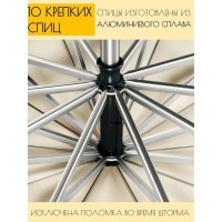 Прочная конструкция из стали и стекловолокна с 10 спицамиобеспечивает устойчивость к ветровым нагрузкам. В сложенном видезонт имеет компактные размеры, что делает его удобным для переноскии хранения.